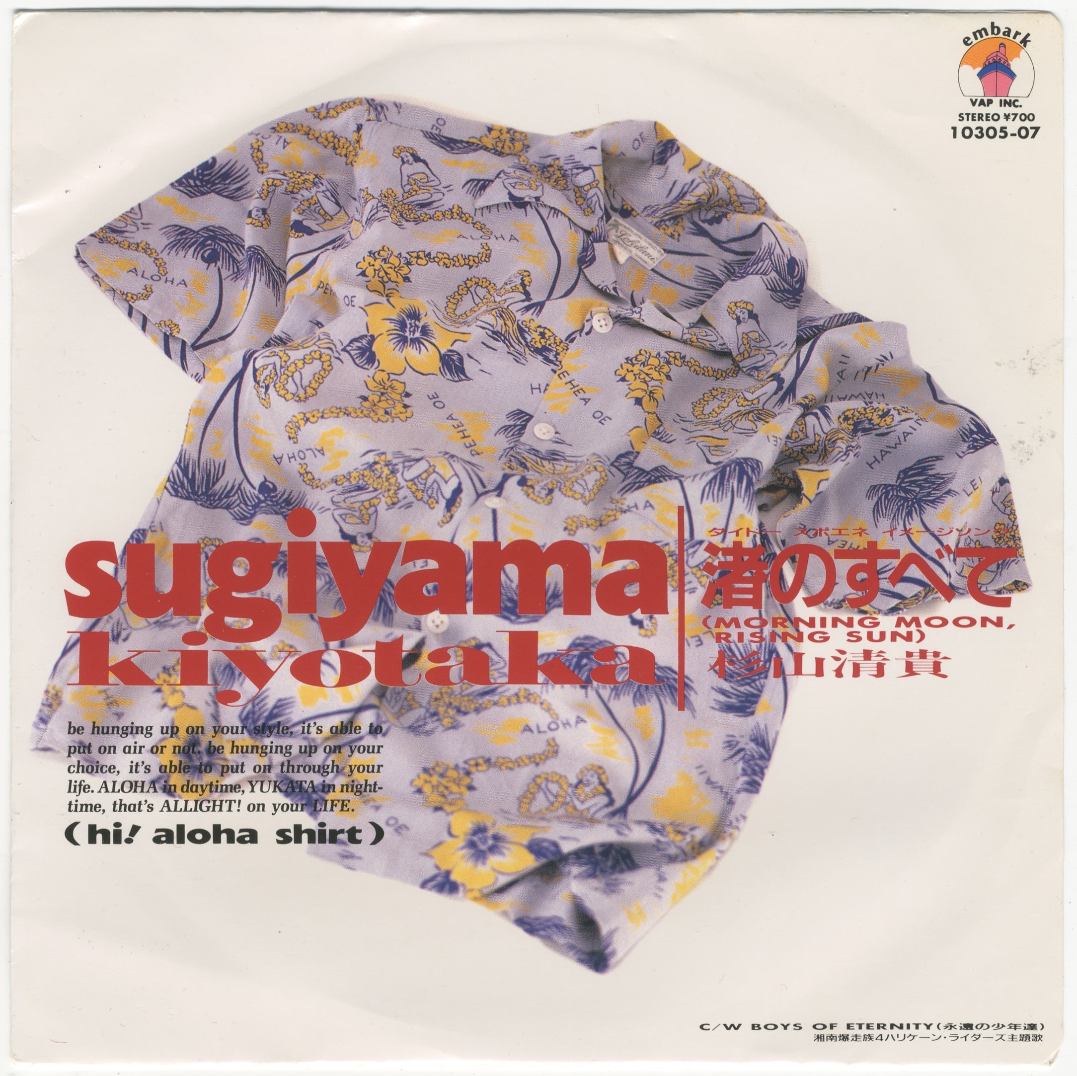 '88 released. 7th. B面「湘南爆走族4 ハリケーン・ライダーズ」主題歌. c/w BOYS OF ETERNITY (永遠の少年達)