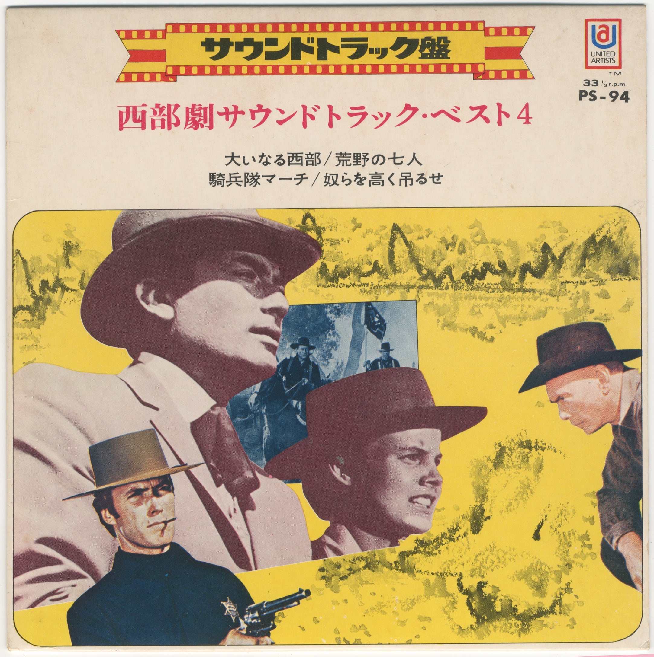 '68 released. ユナイト制作映画のサントラ集. 4Tracks.7" c/w 大いなる西部 / 荒野の七人 / 騎兵隊マーチ / 奴らを高く吊るせ